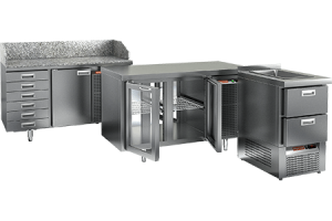 Одной из главных новинок в модельном ряду холодильного оборудования HICOLD стали однодверные холодильные столы, представленные в исполнении с боковым (габариты стола 900х700х850 мм) и нижним (габариты стола 565х700х850 мм) холодильным агрегатом. Обе эти модели гастронормированные, представлены как в среднетемпературном, так и низкотемпературном варианте и предусматривают все те же опции, что и другие столы, например, гранитную столешницу или корпус из пластификата.